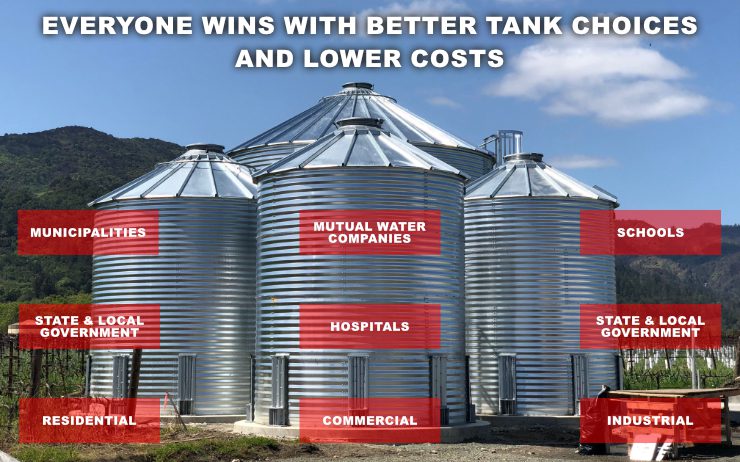 | LOWER COST: Up to 50% more cost effective than other AWWA steel tank choices. | Low Cost Materials, Simple Installations | Schools, Municipalities, Engineers, Architects, End Users |