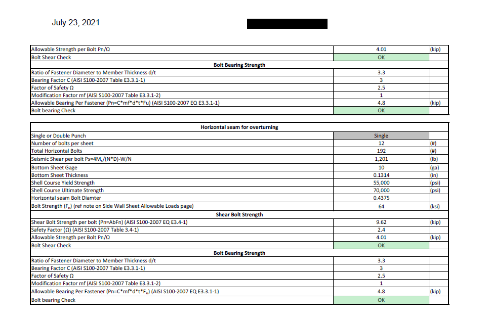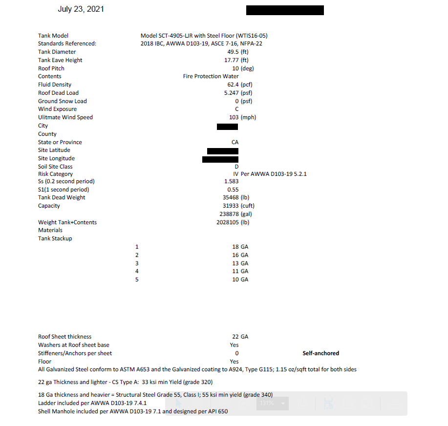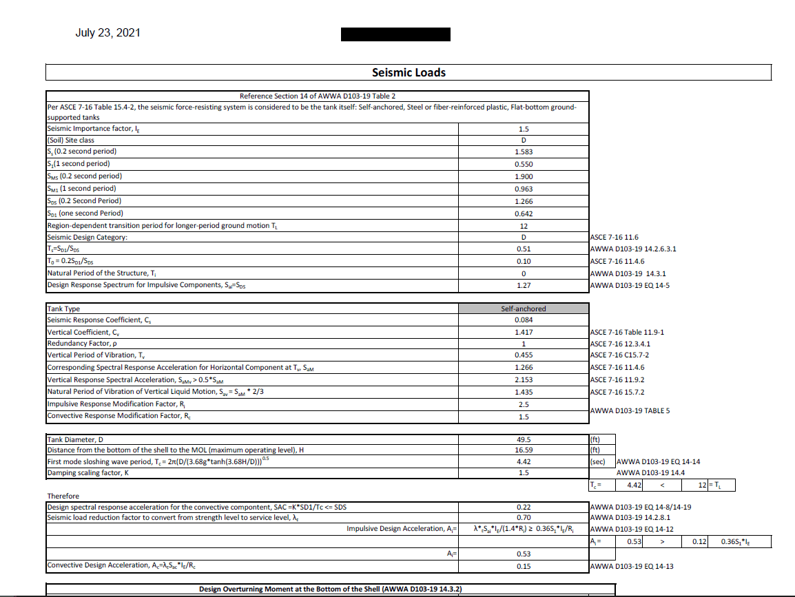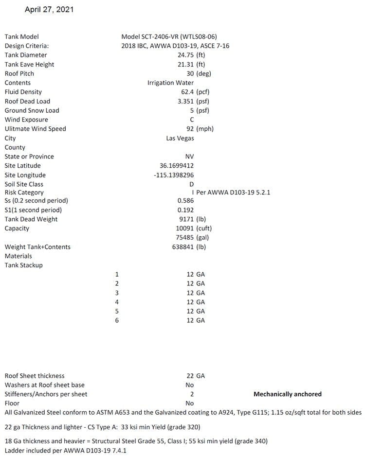 Wind loads and requirements are determined by chapter 15 of AWWA, and we also utilize ASCE 7-16, chapter 29, which reflects much of the AWWA standard. The sidewall sheet design is based on a combination of AISI for bolted joint connections as well as the requirements set forth by AWWA chapter 5.